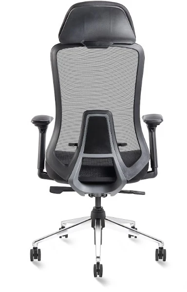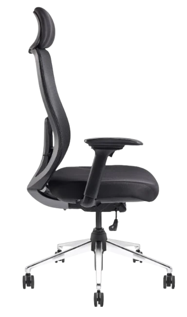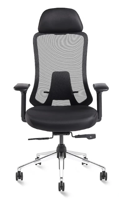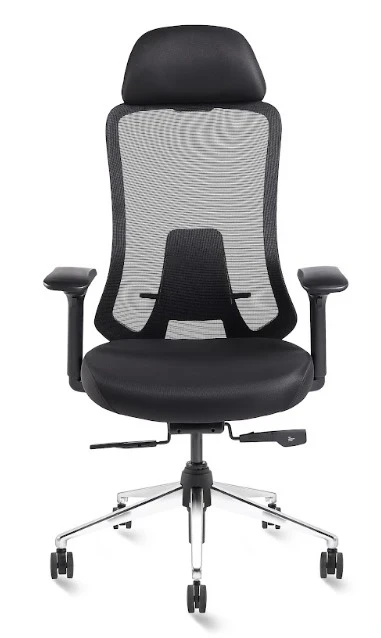 Specification :- b fly >dot mesh back with coat hanger >adjustable head rest >adjustable lumber support >adjustable armrest w pu pad >synchro multiple lock mechanism >chrome base nylon caster wheels