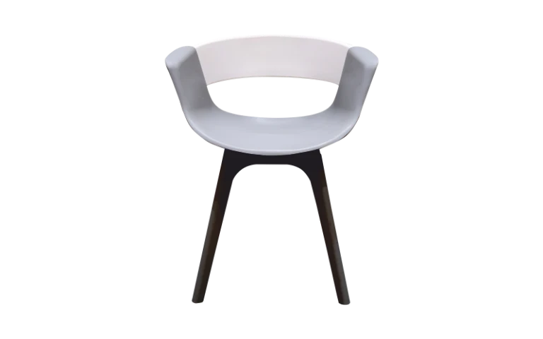 "Channeling mid-century modern flair, this chair features clean lines and a minimalist design. The molded plastic seat is ergonomically shaped for comfort and supported by tapered wooden legs. Available in a variety of colors, it adds a splash of retro sophistication to any café environment."