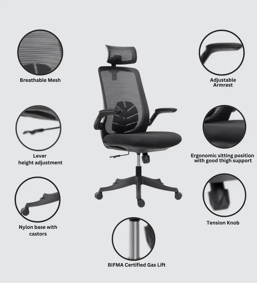 DescriptionErgonomic Design: Dynamic bionic spine pressure relief ergonomic designed chair to improve efficiency and comfort in the working environment |